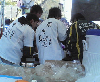 3日・5日と学祭の出店を終え、今日は打ち上げでした(^3^)/ 参加メンバーは… 義昭、みむ、一生、ほりピー、久保くん、岩ちゃん、塚ちゃん、勇人、白倉くん、しづ、優!! まった~り飲んで一次会終了!! 一応解散になったはものの…みんなホッケー部大好きだから一人も帰る気配なし(笑) デザートにアイスを食べたのですがまだ食べたりなくて皆でサーティーワンでアイスを食べることに♪ おいしかったぁ♪ そのあとはゲーセン組み、帰宅組み、飲み組みに分かれることに… 義昭、みむ、一生、しづ、優でにじゅうまるへ!! ボトルいれちゃいました~(笑) ここでもシメはアイス!!本日3回目~(笑) さて、ちょっと先の話ですが今年のインカレ合宿は12月の28日からになりました! 去年に引き続き今年も年越し合宿☆ わぁい☆楽しみです☆ PR 昨日行われました平成19年度関東大学アイスホッケーリーグ戦対立教大学の結果をお知らせ致します。 8-1で我々の勝ちでございます。 『ゴール』 青学 立教 3-0 3-0 2-1 ******* 8-1 『シュート』 青学 立教 16-4 14-6 6-14 ******* 36-24 『ペナルティー』 青学 立教 3-3 2-2 4-1 ******* 9-6 『ゴール、アシスト』 (1P) G堀内 A松本 06’38 G宮川 07'09 G園田 A堀内 13’28 (2P) G荒関 17’20 G荒関 A三村(勇) 17’46 G園田 19’09 (3P) G高橋 A荒関 36’49 G三村(勇) A荒関 39’26 『GK滞氷時間』 西山/39分39秒 渡辺/05分11秒 キャプテン高橋のコメント 「今日も勝利することができ、一次リーグを一位で通過するのが現実のものとなりそうです。チームワークも以前より良くなり、このまま二次リーグを戦い抜きたいと思います。OBの方々にはいつも寄付を頂いており、本当に感謝しております。いただいた寄付は大事に使わせていただきます。」 昨日の試合は、序盤から青学のペースで戦うことが出来ました。一次リーグも残り1試合となりましたが、残り1試合も勝利できるよう、油断することなく全力で練習に励んで参ります。今後とも皆様のご指導、ご声援の程、宜しくお願い致します。 尚、次回の試合は11月10日(土)19:30~東伏見ダイドードリンコアイスアリーナにて、平成19年度関東大学アイスホッケーリーグ戦第六戦対国士舘大学です。 ホッケー部の写真追加しました!!(mixi) 春合宿の模様を載っけています♪ ぜひご覧下さい♪ http://mixi.jp/view_album.pl?id=6988095&mode=photo 最近毎日すっごく忙しくて、今日久しぶりにパソコンひらきました(><) 更新できなくてごめんなさい!! さて、昨日は青祭初日でした♪ 場所もよかったしかなりの大繁盛!!!! ほりピー(#14 )作のれん♪ うまいですよね(*^^*) お店はこんな感じ!! 下にある看板は勇人(#91)作♪ 皆、絵上手なんだね〜♪ さらにビックリうれしいことが!! 一生(#29)が焼き鳥Tシャツを作ってくれたんです!! しかも背番号入りー♪ お店番をしている選手の後ろ姿とTシャツ☆ 左から久保くん(#79)、塚ちゃん(#44)、白倉君(番号ナイショ笑)、メガちゃん(#51) 焼き鳥担当は主にほりピー(#14) バイトでも焼いているみたいで、すごく慣れていました♪ 看板娘の1年生優ちゃんと♪ 隣のお店の人、陶器の銅像みたい…(笑) 色々な工夫をして客引きもしましたよー♪ さぁ、誰の手でしょう?!(^^) 明日もお昼までやっているので、お時間ある方はぜひ遊びにきてくださいね♪ 今日の立教戦は8-1で勝つことができました☆ 明日詳細UPします♪ 昨日はコーチの岡田さんが練習に参加してくださいました♪ 私の2つ上の先輩なので、2年間チームメートでした。当時から大ファンなのですが、今でもいつ会っても素敵な方です(*^_^*) 明日は青山祭準備、あさってはとうとう本番です♪ 私は江國香織さんの小説がすごく好きなのですが、今読んでいるホリー・ガーデンという作品の中で『アイスホッケー』という単語がでてくるんです! ルールが難しいスポーツという局面でですが…笑 確かにホッケーって、初めてみるとワケわからないですよね(;^_^A 私も初めてみたとき、『アイシング』をチーム名だと思っていました笑 でもみたら確実にハマる。そんな魅力がたまらないんですけどね♪ 皆さんもアイスホッケーまだみたことないというお友達を連れて、ぜひ観戦にいらしてくださいね(^3^)/ カレンダー