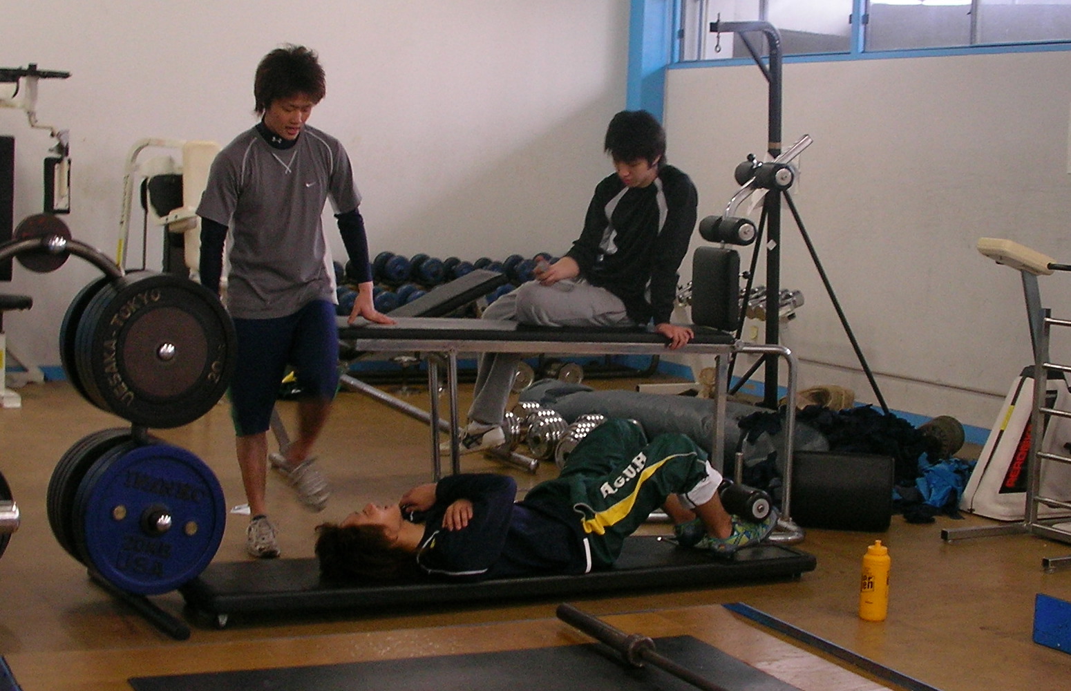 3/10(SAT) 31日に神大との練習試合が決定しました〜♪ 29日にもどこかと組もうという話が出ているので、(多分KO大が有力ですが…) 決まり次第お伝えします(^^) 今年の合宿は、なんとマイクロバスを1台借りていくことになりました♪ 東京近郊の合宿では、うちの部活はそれぞれ自家用車を出していくので、なんだか新鮮☆ もーすぐ、ミム(#11 副キャプテン)のお誕生日です☆ 3/17日!! 皆、お祝いしてくださいね♪♪ PR 3/9(FRI) 今日は3月9日レミオロメンの日ですね♪ そんなレミの日に、青学アイスホッケー部は楽しく代々木公園で陸トレしてきました!! マネージャーも選手と一緒に走ってたんですけど、途中で脱落…。改めて選手はすごいです! 代々公についてまずはダッシュを何本かこなしました! ステップを踏んでからのダッシュもあったり、 そこから新作おもしろメニューが実行されました!!! 「その場で足踏みしながら、目の前にたっている人の両手の数(本数を示す)を足して、答えを言ってからダッシュする」 間違えた人は…もちろん、長距離ダッシュ☆ 最初は簡単な問題だったんですが、だんだん問題を出す方も指の出し方を工夫したりと、かなり盛り上がってました〜(^^) そして、次は両手の数をかけ算してからダッシュ!! 失敗すると、こんな遠くまでダッシュしなきゃいけないんです(><) さらに、今度は芸能人の名前を言ってからダッシュバージョンに変更! 頭文字を言われたら、その芸能人を言わなくてはいけない、というルール。 その時、めっちゃ面白い事が!!!! 「あ」と言われた、塚ちゃん(#44 新2年生) 「アベマリア!!!!」と言ってダッシュ…。 皆爆笑!!! アベマリア曲名だから〜笑 きっと彼は「阿部まりあ」だと思ったのでしょう笑 ナイス、塚ちゃん♪♪ 最後にチーム対抗フリスビー対決をして代々公の陸トレはおしまい♪ 後は、青キャンに戻って各自ウエイト☆ 今日は、腹筋(3セット×30回)×3回 というメニューもこなしてました! 皆さんお疲れさまです〜(^^) 3/5(月) 新チームでの部活がスタートしました! 12時からミーティングを行なって、一つのテーブルを囲んで、キャプテン、副キャプテンが前に座って(まるで裁判みたいな感じでした笑)… 1時間半前に4年生だけで集まって、色々話し合ったので、それをまず後輩達に伝え、後は皆での話し合いへ… 4年生から個々への質問とかもあったり、なかなかメリハリのあるいいミーティングでした(^^) 今年は色んなイベントをやろうと企画! 色々案がでてたら、誰かが「イベントサークルみたいだな〜」って笑 確かに…笑 違うスポーツでチーム組んで大会に出よう、なんて話も♪ とにかく!!!楽しいチームになりそうで、一年が楽しみです☆ さてさて、その後に行なわれた陸トレですが…。 今年は、月1の計測会を行なう事を決定!!!! 記念すべき第一回目は、 ・ベンチ ・バックプレス ・スクワット ・けんすい ・腹筋(30秒) の計測をしました♪ すごい記録がいっぱい出ましたよ〜♪ MVPは塚ちゃん(#44 新2年生)かな♪ あのムキムキ上半身は本物だ!!!!!!!!!笑 陸トレの様子、写真に撮ったのでのっけます♪ (*小さいサイズでは出てないですが、クリックすると写真がでてきます) もう部活は始まってます♪ 4年生は就活と平行しているので、なかなかハードスケジュールですが、頑張ってます♪ 今は陸トレを中心に体作りに励んでます(^^) 5日の陸トレの様子は、ばっちり写真におさめてあるので、近々載っけますね☆ ウエイトで驚異的な記録を出した選手がいるので、楽しみにしててください〜♪ <陸トレ> 月・水・金 11時〜 in青キャン <氷上> 14日 25:15〜東伏見 16日 25:15〜新横浜 18日 24:15〜新横浜 29日 25:15〜東伏見 31日 25:30〜新横浜 <合宿> 3月22日〜26日 in伊香保 4月から4年生になるMG(#20)の公文です。 昨年まで別のMGがブログを作っていたのですが、引退したので私がまた新たにブログを立ち上げていく事になりました! 他のMGとも協力して楽しいブログを作っていく予定です♪ 写真もいっぱい載せて、頻繁に更新していくので、是非是非いっぱい遊びに来てください(^^) カレンダー