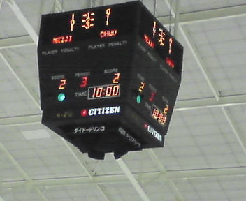 昨日行われました平成19年度関東大学アイスホッケーリーグ戦対国士舘大学の結果をお知らせ致します。 6-3で我々の勝ちでございます。 『ゴール』 青学 国士舘 2-0 3-1 1-2 ******* 6-3 『シュート』 青学 国士舘 24-3 17-5 20-5 ******* 61-13 『ペナルティー』 青学 国士舘 3-2 1-2 1-1 ******* 5-5 『ゴール、アシスト』 (1P) G荒関 07’10 G荒関 A松本 07'44 (2P) G松本 A荒関 21'47 G三村(勇) 28’43 G宮川 A塚田 32'51 (3P) G高橋 A荒関 三村(勇) 59’16 『GK滞氷時間』 西山/60分 キャプテン高橋のコメントは、後ほどお送り致します。 昨日の試合も経験者の少ない人数での試合となりました。しかし大学からアイスホッケーを始めたメンバーも交え、新しいチームで一丸となって戦った結果、勝利を収めることができました。次回の試合は二次リーグ最終戦となりますが、実力・技術を十分に発揮して参りたいと思いますので、皆様のご指導、ご声援の程、 宜しくお願い致します。 尚、次回の試合は12月2日(日)12:00~東伏見ダイドードリンコアイスアリーナにて、平成19年度関東大学アイスホッケーリーグ戦二次リーグ最終戦対慶應義塾大学です。 PR 昨日の国士舘戦は、DF3人回しはさすがに厳しいのでキャプテンでFWのひで(#15)がDFに回ったり、大学からホッケーを始めた久保くん(#79)が経験者セットにまざって試合にでたりと、面白い展開でした♪♪ 前々回の神大戦により、幾人かのOBの方々より叱咤激励のお声を頂いております。 どれも確かにその通りであり、そう言ってくださる皆様のお気持ちを真摯に受け止め、心から感謝したいと思っています。 いつも現役のことを考えてくださり、本当にありがとうございます。 さて、毎回青学の観戦記を書いてくださっている方がいます。 ↓ http://blog.so-net.ne.jp/zanmai/ 他にもぐるっとリンクを見渡すとビデオを撮ってくださっている方、観戦記をつけていらっしゃる方、何人か見受けます。 黒ユニフォームは背番号とパンフレットが一致しているのですが、ビジターユニフォームの白ユニフォームは若干のズレが生じておりますので、ここにて発表させて頂きます。 <学年> (名前) 黒ユニフォーム背番号、白ユニフォーム背番号、ポジション <4年生> (高橋 英徳)15、18 FW (荒関 義昭)22、22 FW (三村 拓人)11、2 DF (深井 康介)3、11 FW (鈴木 佑基)9、8 DF <3年生> (堀内 勇克)14、19 FW (西山 一生)29、29 GK (久保 健一郎)79、20 FW (岩田 純一)5、15 DF <2年生> (塚田 和生)44、23 DF (宮川 真紀)26、12 DF (高野 文徳)51、7 FW (渡辺 高樹)23、33 GK (杉山 勇人)24,10 FW <1年生> (佐藤 昌一)17、17 DF (三村 勇人)91、3 FW (松本 匠) 10、14 FW *1年生の白倉くんについては少々お待ちください。 今日行なわれた対国士舘大学戦、6-3で勝ちました♪♪ 詳細は明日UPします!!(^^) その他の試合結果についてですが… 波瀾万丈な展開になりました!! 東洋vs法政は、4-2で法政の勝ち。 早稲田vs明治は、7-5で明治の勝ち。 慶應vs神大は6-1で慶應の勝ち。 法政はここ最近の調子の良さを今日につなげ、明治は不調からしっかり回復を取り戻した感じでした。 ただ、東洋と早稲田は全体的に調子の悪さを感じたので、次までには立て直しを図っていてほしいと願います! 特に東洋は明日、日大との試合が控えているので、感覚を取り戻してくれたら…と思います。 日大も、1次リーグ4位まで行った実力を、東洋相手でも臆すことなく発揮してほしいです! 少し期間があきますが、次回はリーグ戦最終戦、その後は入れ替え戦が控えています。 最終調整、しっかりしていきたいと思います! 24日(土)は、東海vs大東 専修vs日体の試合が行なわれました。 結果は、4-1で東海、4-2で専修の勝ちです! 明日25日(日)は、 12:00~青学vs国士舘 14:30~東洋vs法政 17:00~早稲田vs明治 これまた面白いカードが勢揃いです!!!!! うちは選手不足が心配点ですが…相手の国士舘も人数の少ない大学なので、いい勝負になるのではないかと思います! <東洋vs法政> 強豪東洋が勝つのか、それとも先日の明治戦を6-2で下した法政がリズムを崩さないでこの試合も勝ちにいくのか… 法政は3次リーグへ進むにあたって、ここは絶対に勝ちたい一戦だと思うので、激戦を期待しています!! <早稲田vs明治> 共に3次リーグ進出を決めている両者の直接対決ですが、優勝を狙う以上ここは勝っておきたい一戦。 いまいち本調子ではない明治が心配ですが、明日の早稲田戦には立て直しを図っていてほしいです。 早稲田は、明日も無敗神話を更新するのでしょうか(*^^*) 3日連続リンク生活、明日が最終日です♪ (写真) GK一生(#29)にもらったキーパースティック♪ カレンダー